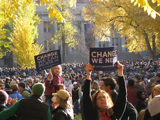 i asked my friend jen to post something about the experience she had last sunday, when she and her family stood with an estimated 50,000 people at the "oval" at colorado state university campus to hear obama speak.